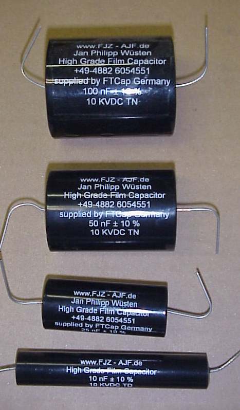 | Endlich ist die neue Serie Hochspannungskondensatoren aus dem Hause Fischer und Tausche lieferbar. | Finally we can supply true high voltage caps of current production, made by F&T | Enfin nous pouvons fournisser les condensateurs à haute tension d´une production courante de F&T. | ||||||