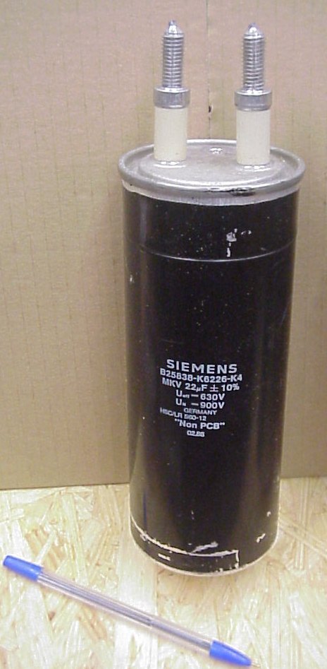 | Fabrikat Siemens MKV, sehr hochwertige, niederinduktive Kondensatoren für hohe Strombelastbarkeit. Sehr beliebt als Sieb- Koppel- und Abblockkondensatoren, sowie für Lautsprecherweichen. Achtung, das sind keine kleinen Teile... | Siemens MKV High power capacitors. Those are real power electronics capacitors !! Use in filters where you do not want to use electrolyitcs but take care, they are pretty large. All dimensions metric. Polypropylene in oil, low inductance. We got plenty of real good feedback from customers using those as filter caps, in interstages and even as coupling capacitors. The caps we offer here have been tested and clean and do mainly come from equipment that has been surplused due to modernisation. | Condensateurs haute puissance, Fabrication Siemens, version MKV. Très utile comme condensateur de filtrage, couplage etc. Mais attention, ceux ne sont pas petits. Occasion, testé. | ||||||