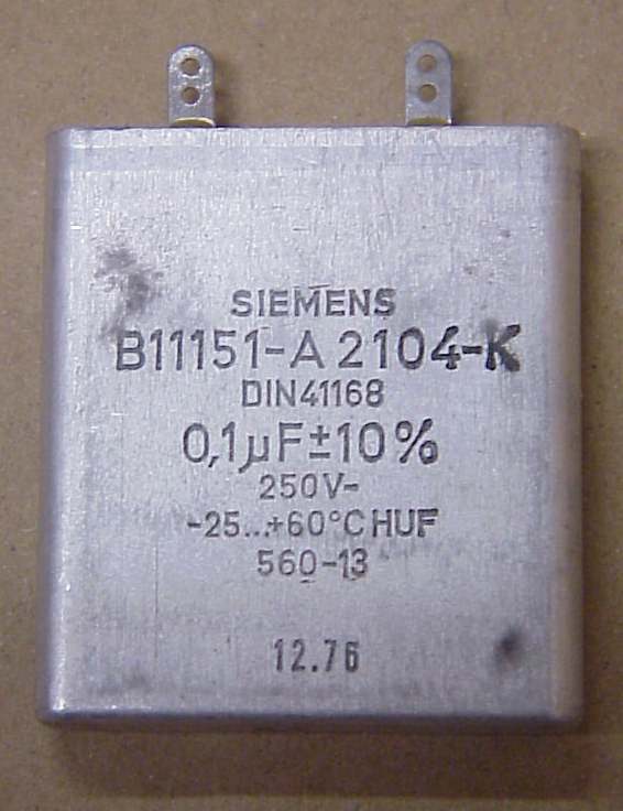 KON167 | Siemens Ölpapierkondensator, Folie-Papier, kein MP,100nF 250 V | Siemens Metal foil-Paper in Oil cap, industrial NOS quality, 0.1 MFD 250 V . Wonderful cap for crossovers etc. | Condensateur film Aluminium / Papier Huilé, Siemens, neuf, très bien pour les filtres etc. 0,1uF 250 V | 2,40 | 2,78 |