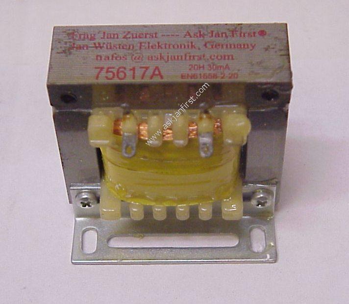 New: Filter choke, 20 Henry 100 mA DC 66*66*64 mm³ Now black 2k-coated and without welded feet. So mounting with cover TRAZ33 is an easy game.